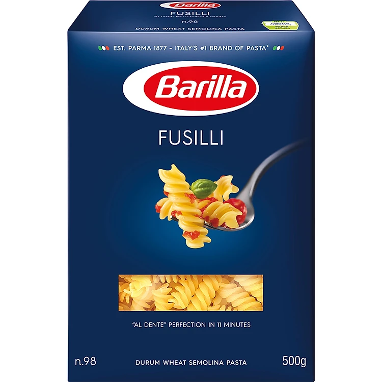 - Mì Nui Barilla Hình Xoắn Các Cỡ Fusilli (500g) được làm từ các nguyên liệu tự nhiên, không chất bảo quản độc hại, mang đến sự an tâm cho người tiêu dùng.