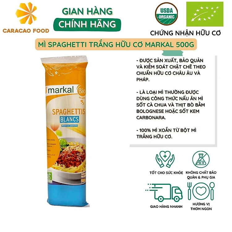 • Mì Spaghetti trắng hữu cơ Markal là một trong những sản phẩm được sản xuất, bảo quản và kiểm soát chặt chẽ theo chuẩn hữu cơ Châu Âu và Pháp.