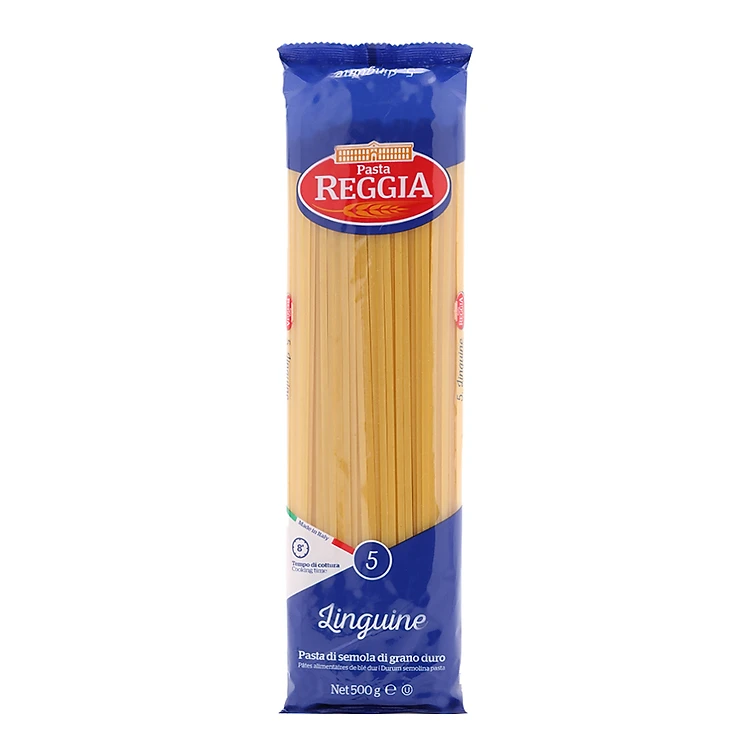 Mì Ý Sợi Dẹt 5 Pasta Reggia 500g với dạng sợi ống dẹp, miếng hình chữ nhật.
