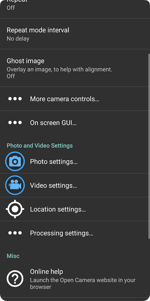 Lưu ý: Trên một số máy Androi như OPPO, Huawei ... không hỗ trợ mic ngoài khi quay Video. Ngừoi dùng cần dùng ứng dụng quay Video bên thứ 3 để sử dụng. Vào CH Play tải ứng dụng Open Camera (Miễn phí) và cài đặt vào máy. Khi cài đặt xong mở ứng dụng kích họat Mic thu âm ngoài như sau.
