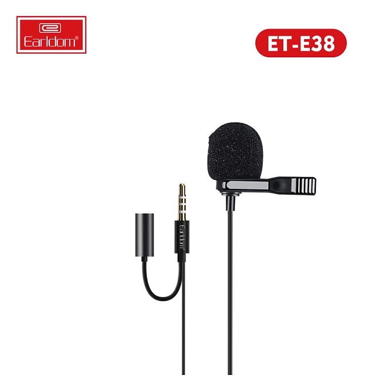 Mic Thu Âm Mini Cho Điện Thoại Chân 3.5mm kèm Jack Cắm Tai Nghe Earldom E38 Hàng Chính Hãng