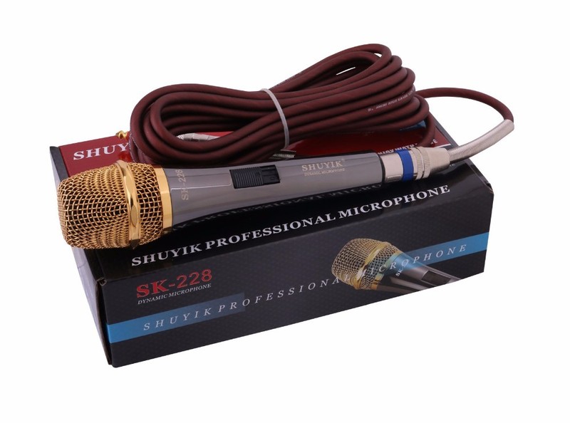 Nói đến micro karaoke có dây giá rẻ và hay , phải nói đến dòng micro karaoke có dây Shuri SK - 228 micro karaoke giá rẻ nhưng không làm bạn thất vọng khi sử dụng thử dù chỉ 1 lần . Micro karaoke Shuri SK - 228 với thiết kế đẹp , thân micro và đầu micro làm bằng kim loại sáng bóng màu vàng sang trọng Micro Shuri SK - 228 có khả năng bắt lời siêu nhạy , tiếng thu lớn sẽ giúp bạn thể hiện những ca khúc mượt mà mà không bị đuối hơi hay vỡ tiếng khi hát .