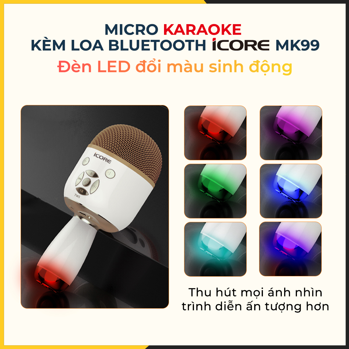Để tăng thêm phần sinh động cho sản phẩm, nhà sản xuất iCore cũng đã bổ sung thêm 1 cụm đèn LED với khả năng đổi màu và nhấp nháy ở dưới đuôi mic. Giúp không gian ca hát thêm phần lung linh và đã mắt, đã tai hơn.