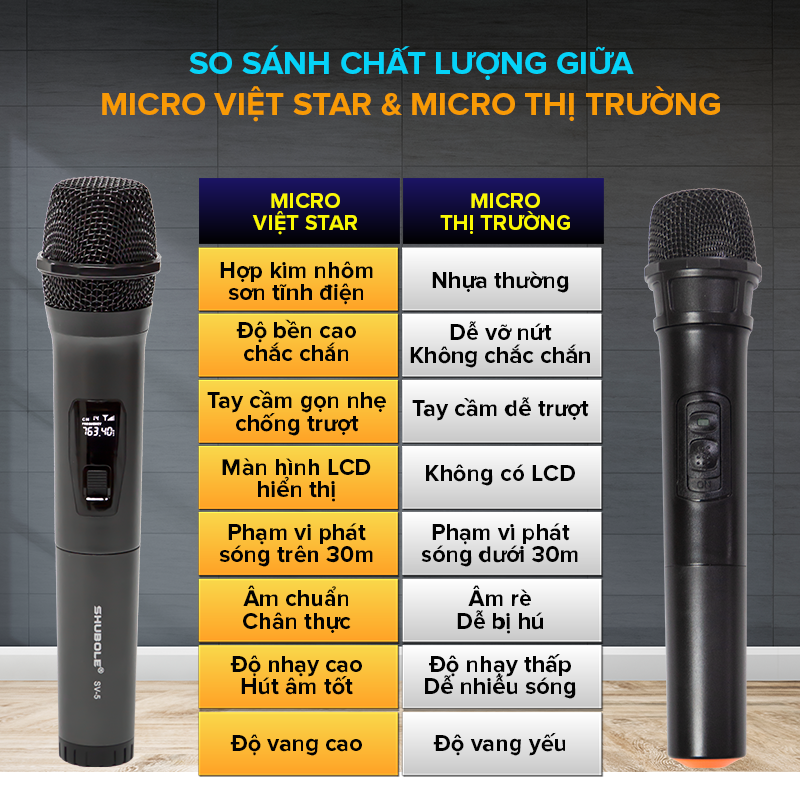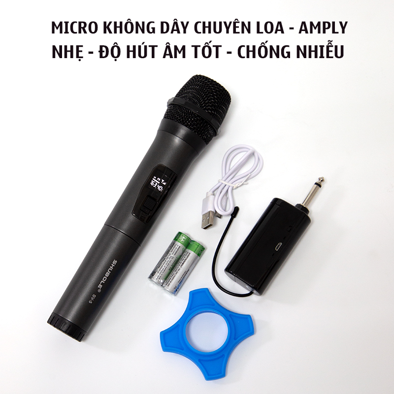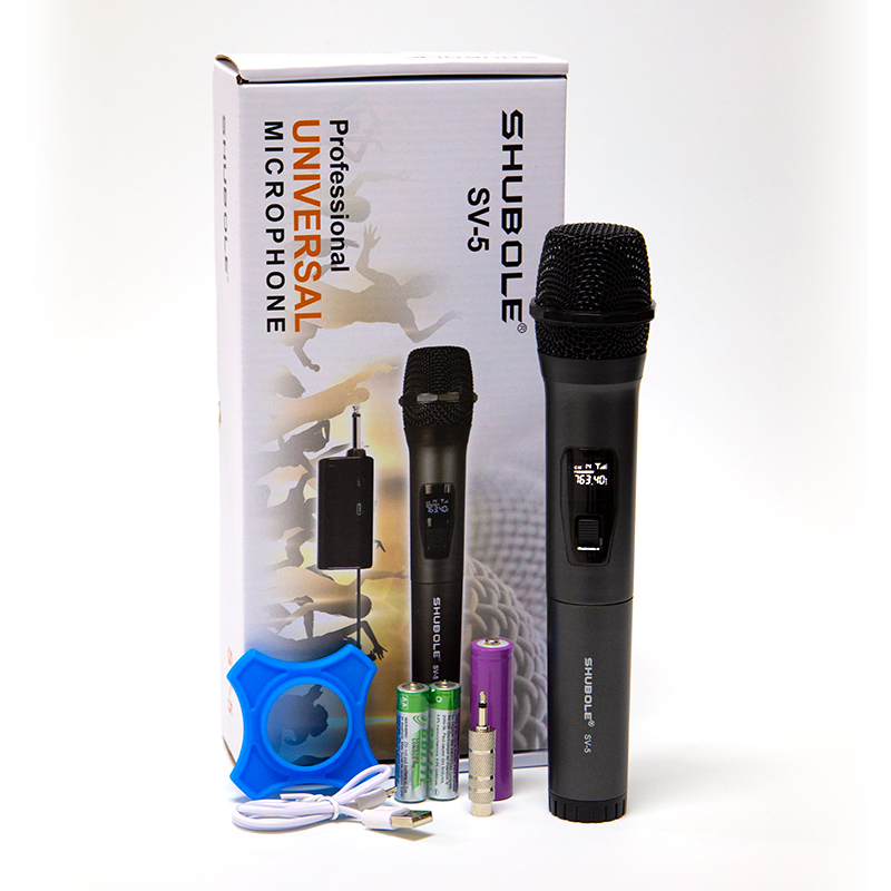 Micro Karaoke Shubole SV-5 thuộc dòng Micro không dây công nghệ mới nhất với mức giá rẻ tại thị trường thiết bị âm thanh Việt Nam hiện nay. Mặc dù giá thành rẻ nhưng chất lượng tiếng hát của "Micro Shubole" SV-5 đem lại khá tốt rất phù hợp cho sử dụng hát Karaoke gia đình, phòng hát, Livetream, bán hàng,