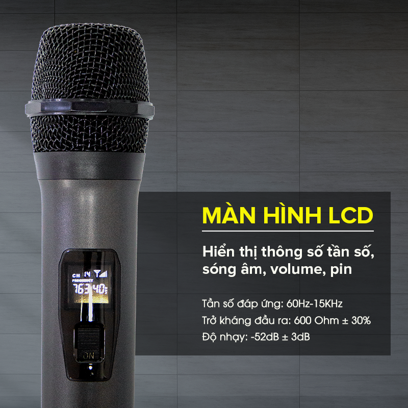 Micro được thiết kế màn hình LED có hiển thị tần số và mức độ tín hiệu của Micro giúp người dùng dễ dàng kiểm soát.