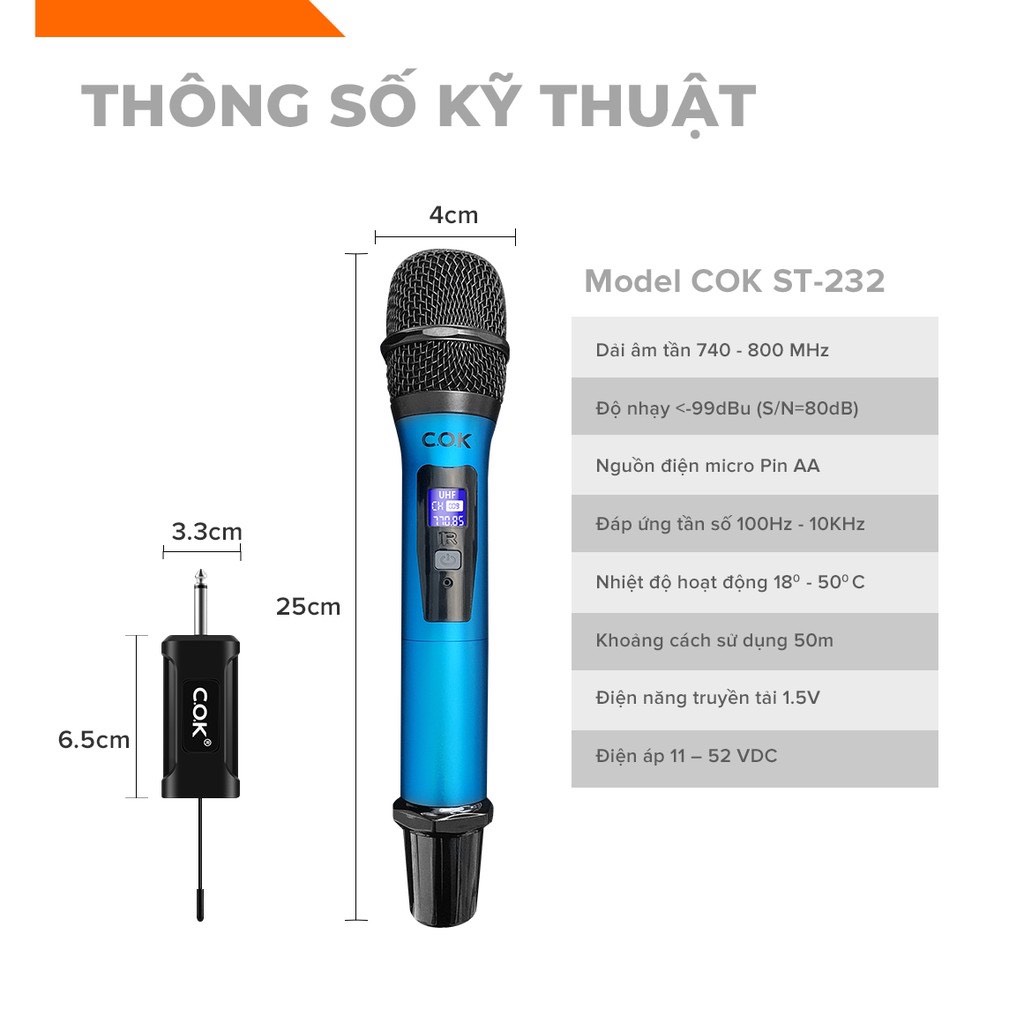 Thông số kỹ thuật của Micro không dây COK 232