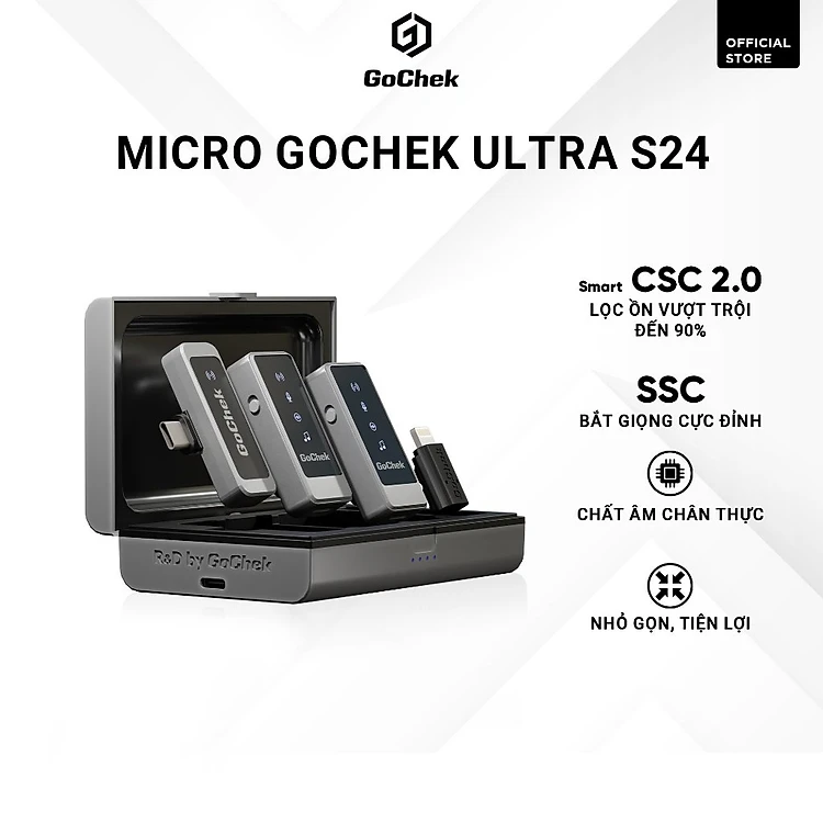 Micro thu âm không dây GoChek Ultra S24, tích hợp 2 chân cắm khi livestream/quay video/ghi âm cho điện thoại/máy tính bảng/PC/Laptop - Hàng chính hãng