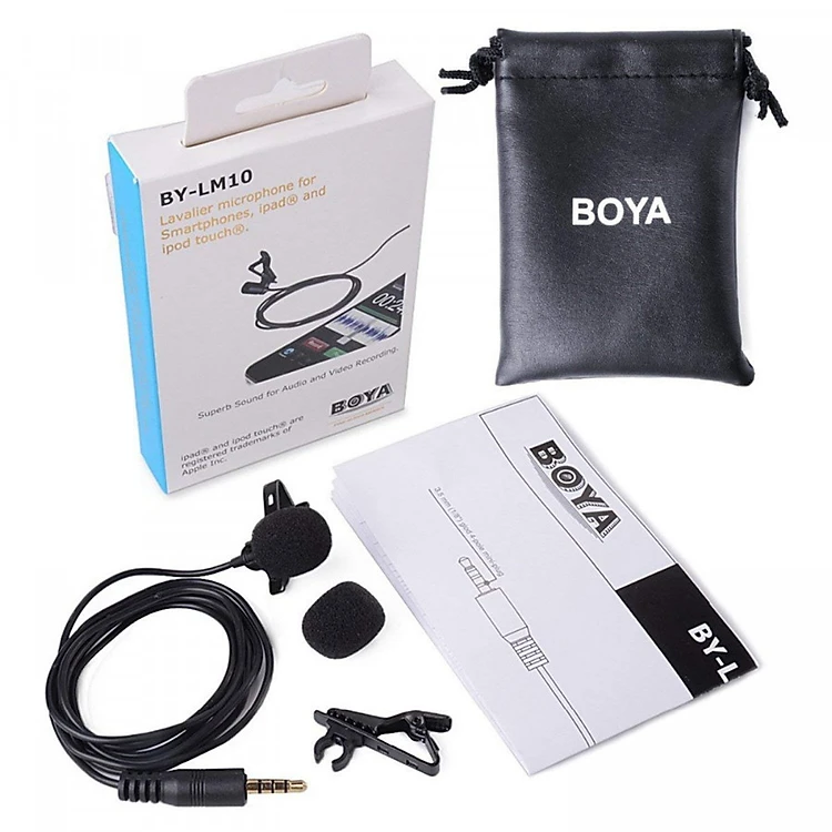 BOYA BY-LM10 là một microphone đa hướng micrô dây chuyền, hoàn hảo để sử dụng video, được thiết kế cho Iphone / Ipad, Ipod touch, và hầu hết các thiết bị Android. Các tính năng: Omni định hướng condenser microphone chất lượng cao condenser mic là lý tưởng cho video sử dụng Low xử lý tiếng ồn Dễ sử dụng. Thích hợp cho: Iphone, Ipad, Ipod cảm ứng, và hầu hết các thiết bị Android