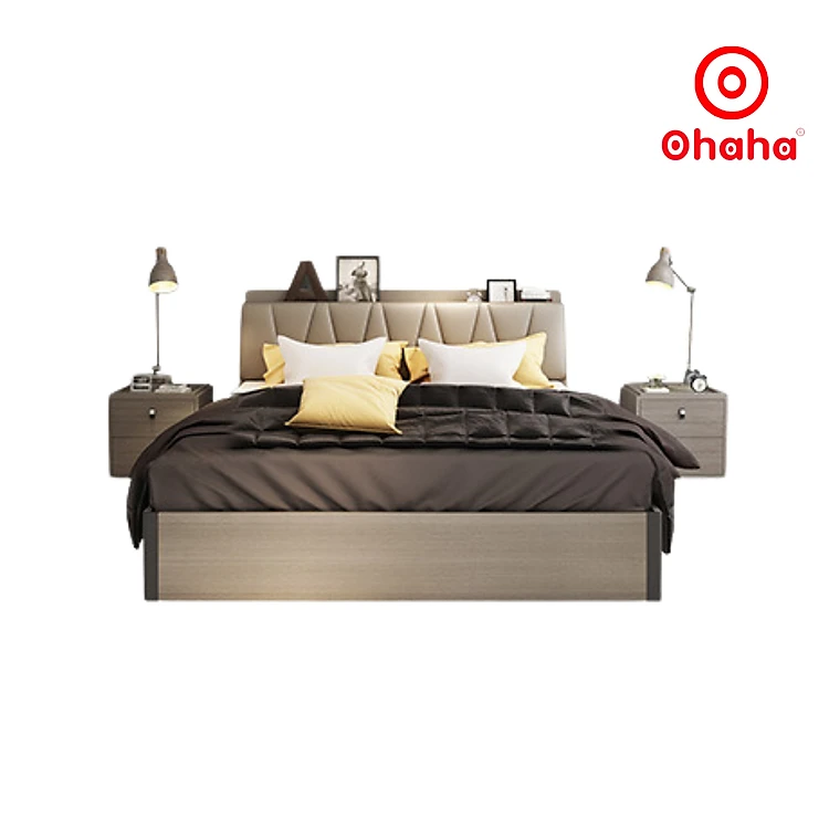 [Miễn phí vận chuyển & lắp đặt] Giường ngủ thông minh cao cấp bọc nệm đầu giường gỗ công nghiệp Ohaha - GN007