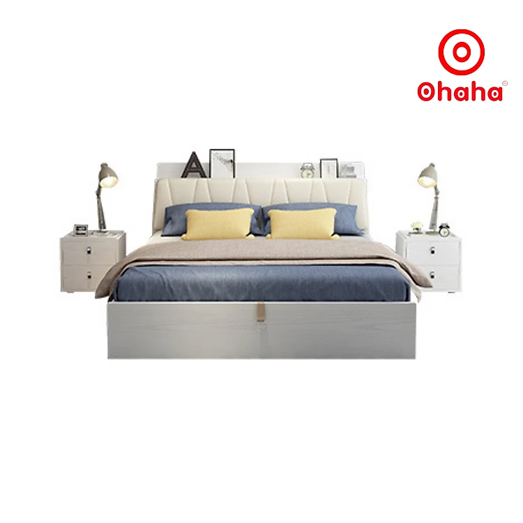 [Miễn phí vận chuyển & lắp đặt] Giường ngủ thông minh cao cấp bọc nệm đầu giường gỗ công nghiệp Ohaha - GN007