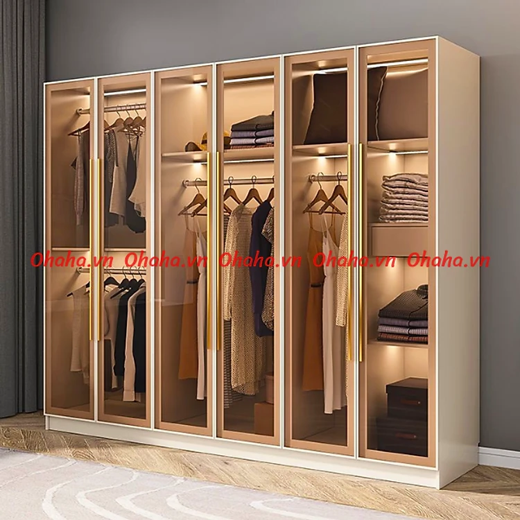 [ Miễn phí vận chuyển & lắp đặt] Tủ quần áo cánh kính Ohaha có kèm đèn led - TCK004