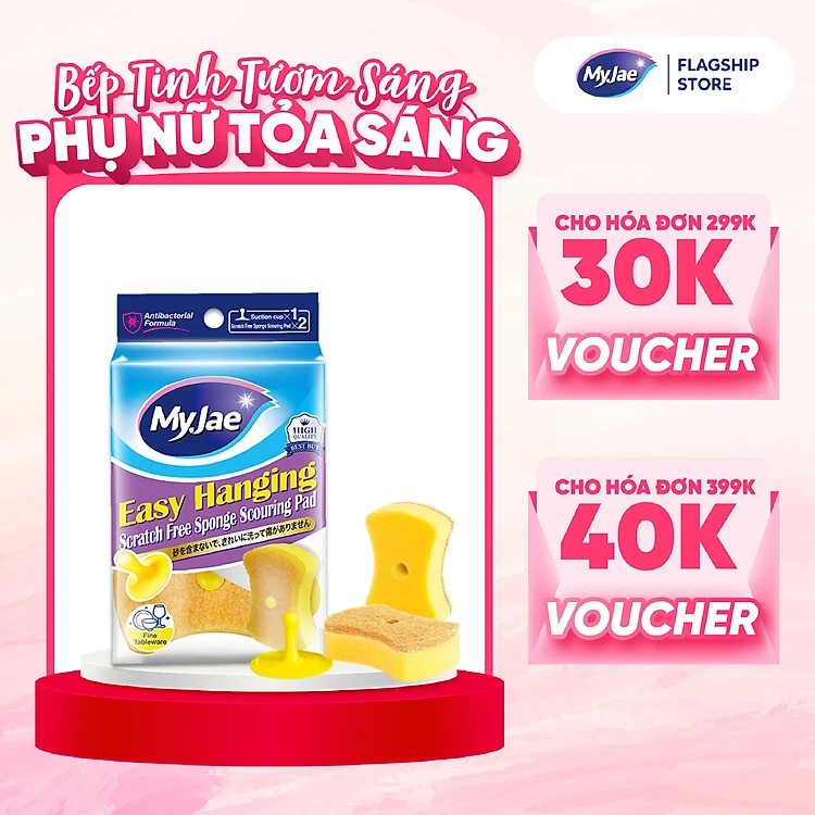 Miếng Bọt Biển Rửa Chén MyJae 2 Mặt, Mút Xốp Rửa Bát Đa Năng Kèm Miếng Nhựa Hít Kê 11.3cm x 7.8cm x 3cm (2 Miếng/Gói)