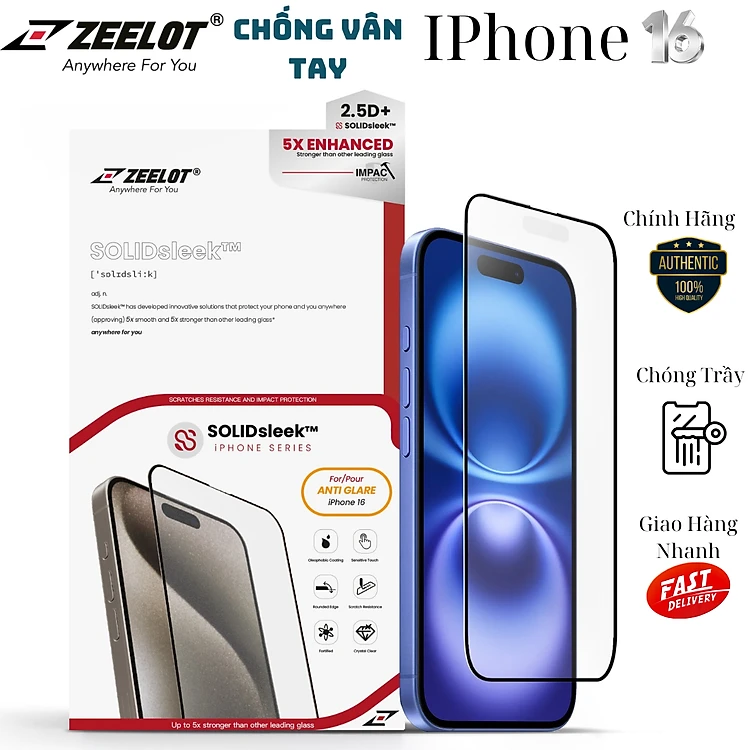 Miếng Dán Kính Cường Lực Nhám Chống Vân Tay Dành Cho iPhone 16 Pro Max/ 16 Pro/ 16 Plus/ 16, ZEELOT SOLIDsleek 2.5D ANTI-GLARE_ Hàng Chính Hãng