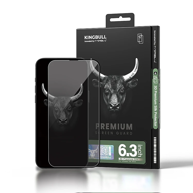 Miếng Dán Kính Cường Lực Trong Suốt Bo viền 3D Mipow KingBull Dành Cho iPhone 16 Pro Max / 16 Pro, 3D PREMIUM SILK_ Hàng chính hãng