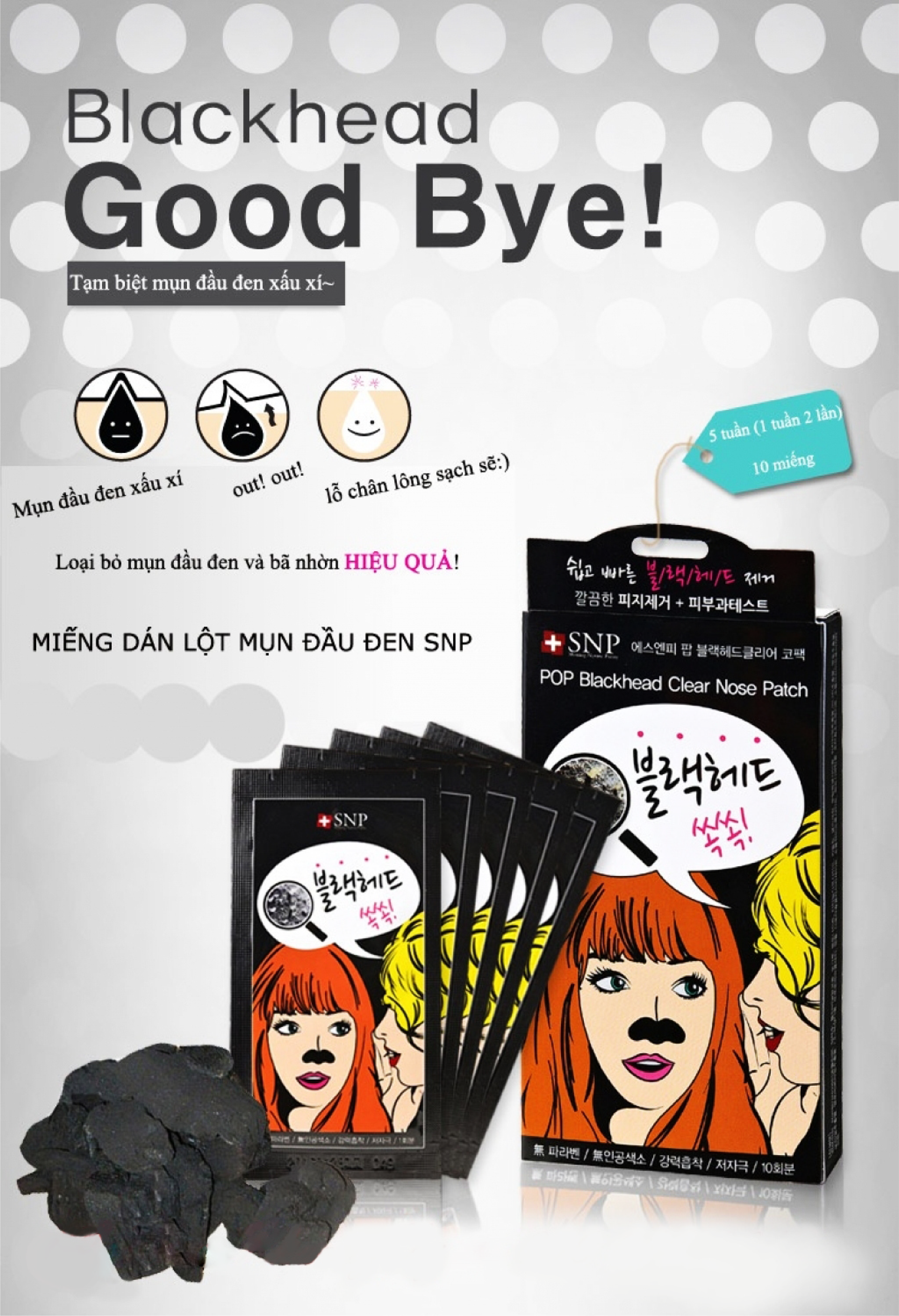Mụn đầu đen là vấn đề hay gặp nhất với làn da châu Á, đặc biệt là những nơi có khí hậu nóng ẩm như nước ta. Độ ẩm, trời nóng làm da tiết dầu nhiều hơn, thêm cả môi trường ô nhiễm khiến chất bẩn tích tụ trong lỗ chân lông và gây ra mụn đầu đen chi chít trên mặt. Miếng Dán Lột Mụn Đầu Đen SNP sẽ loại bỏ bã nhờn và mụn đầu đen một cách hiệu quả nhất, se khít lỗ chân lông và giúp da sáng mịn màng hơn. Trả lại cho bạn làn da sạch nhờn và những nốt mụn đầu đen đáng ghét không còn xuất hiện nữa.
