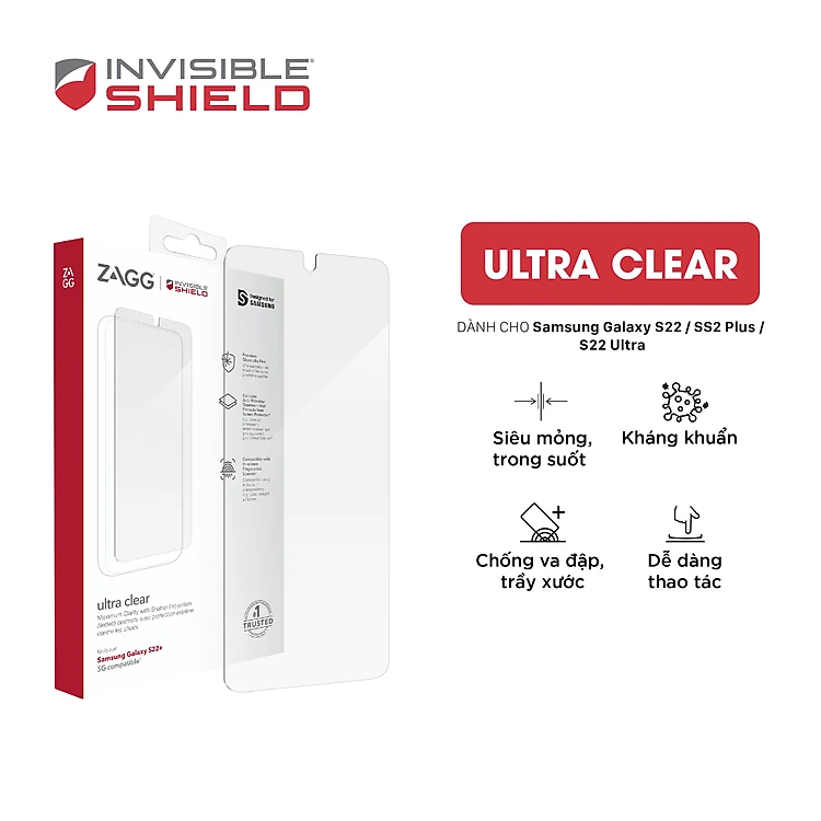 Miếng dán màn hình InvisibleShield Ultra Clear dành cho Samsung Galaxy S22 series - Hàng chính hãng