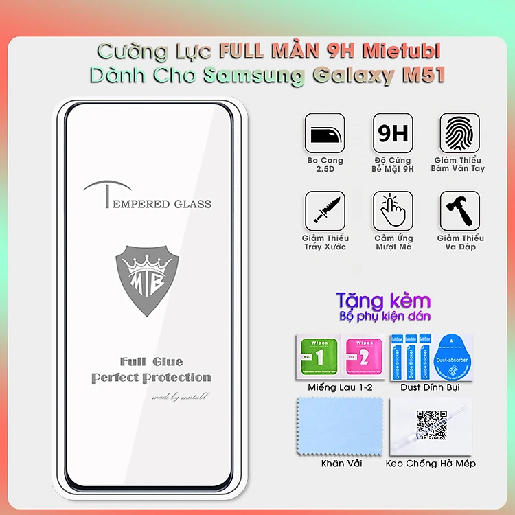 [Miếng dán màn hình] Kính Cường Lực 9H Full Màn Hình Dành Cho Samsung Galaxy M51- Hàng Chính Hãng