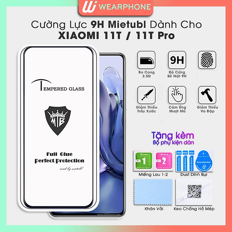 [Miếng dán màn hình] Kính Cường Lực 9H Full Màn Hình Dành Cho Xiaomi 11T / Xiaomi 11T Pro- Hàng Chính Hãng
