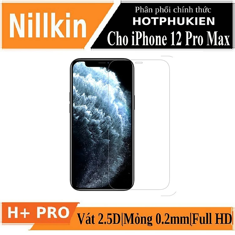 Miếng dán màn hình kính cường lực iPhone 12 Pro Max (6.7 inch) hiệu Nillkin Amazing H+ Pro mỏng 0.2 mm, vát cạnh 2.5D, chống trầy, chống va đập - Hàng chính hãng