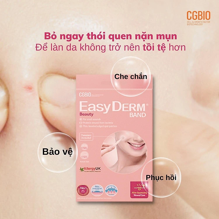 - Miếng dán mụn CGBIO EASYDERM BEAUTY tạo môi trường ẩm giúp nốt sưng viêm của mụn mau lành mà không để lại sẹo.