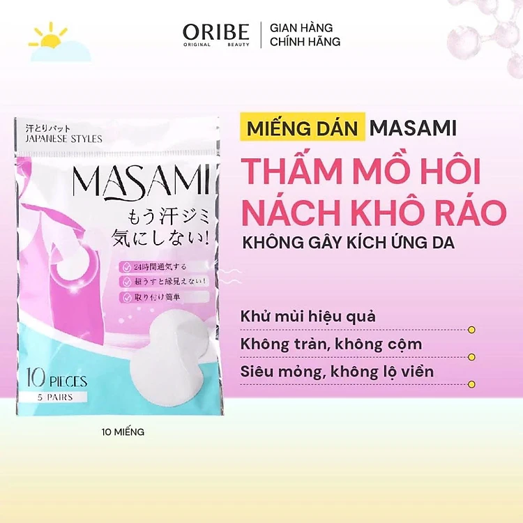 Miếng dán thấm mồ hôi nách Masami khử mùi thấm hút hiệu quả túi 10 miếng
