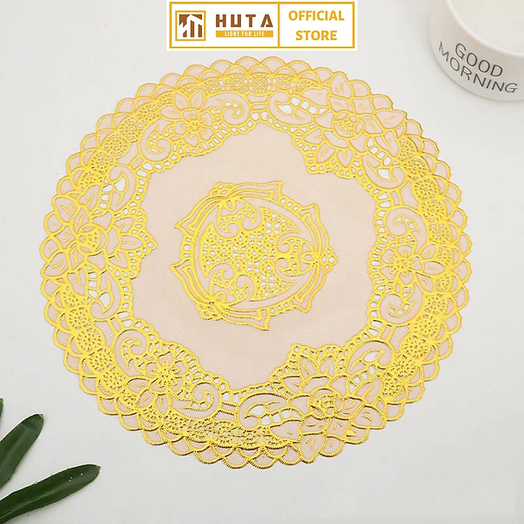 Miếng Lót Đèn Ngủ Để Bàn HUTA Hình Tròn, Nhựa PVC, Màu Vàng Nhiều Hoa Văn