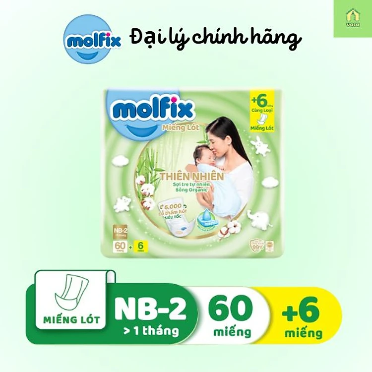 Miếng lót sơ sinh Molfix Thiên nhiên NB2 gói 60 miếng Vaca Baby House