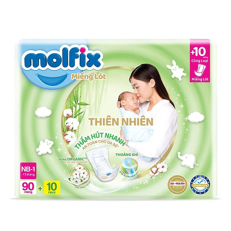 Miếng lót sơ sinh Molfix Thiên nhiên Super Jumbo Newborn 1 (dưới 1 tháng tuổi) - Gói 90+10 miếng