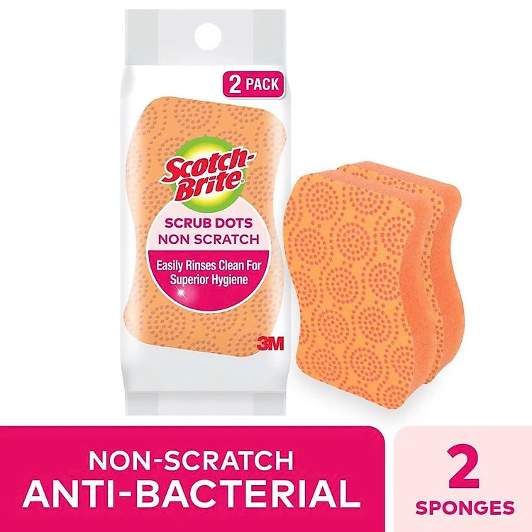 Miếng rửa chén hạt mài nổi có mút không trầy xước, màu cam, 69mm x 114mm Scotch-Brite 3M