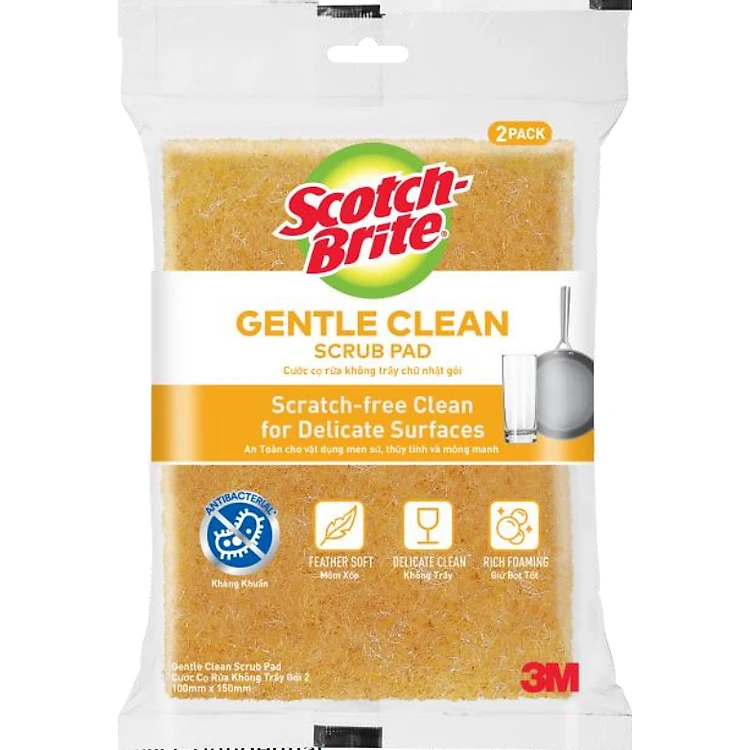 Miếng rửa chén vàng nhẹ nhàng không trầy xước 3M Scotch-Brite, siêu sạch, chống trầy.