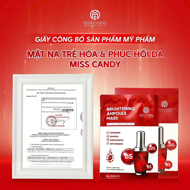 [MISS CANDY] Mặt Nạ Trẻ Hóa & Phục Hồi Da BRIGHTENING AMPOULE MASK Miss Candy (Hộp 5 Miếng x 25g)
