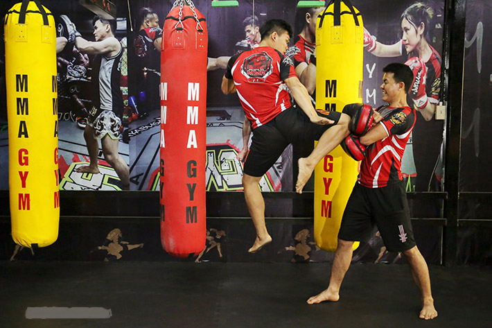 Ngoài tập luyện sức khỏe, MMA Gym còn mang đến cho bạn cơ hội tự vệ bằng các lớp học Muay Thái chuyên nghiệp. Môn võ Muay Thái đang chiếm được sự quan tâm lớn trong giới trẻ hiện nay, luyện tập Muay Thái đòi hỏi sự kiên trì bền bỉ, tạo được sức bền, dẻo dai, sự linh hoạt trong từng đòn thế. Học Muay Thái để cơ thể cường tráng, khỏe mạnh và tự vệ tốt cho bản thân. Hệ thống tập luyện Muay Thái với đầy đủ trang bị như đài đấu, bao đấm đá, thảm tập, người nộm, lăm pơ, găng boxing, giáp, dụng cụ bảo hộ, vũ khí mô phỏng...