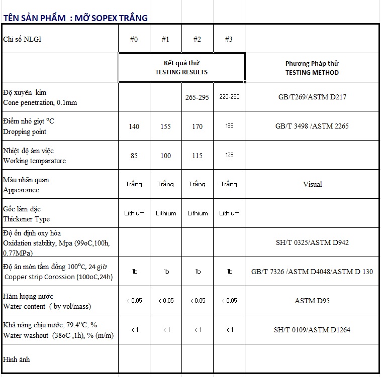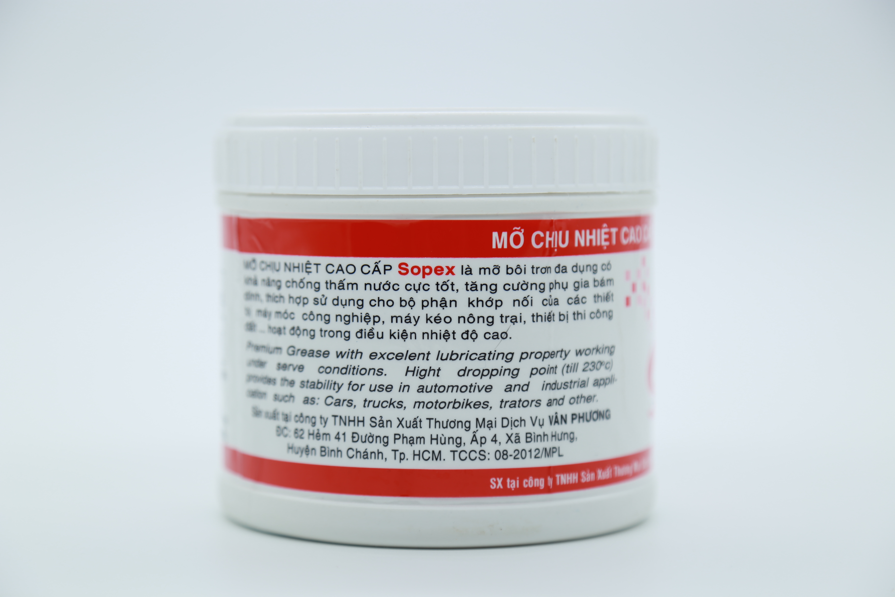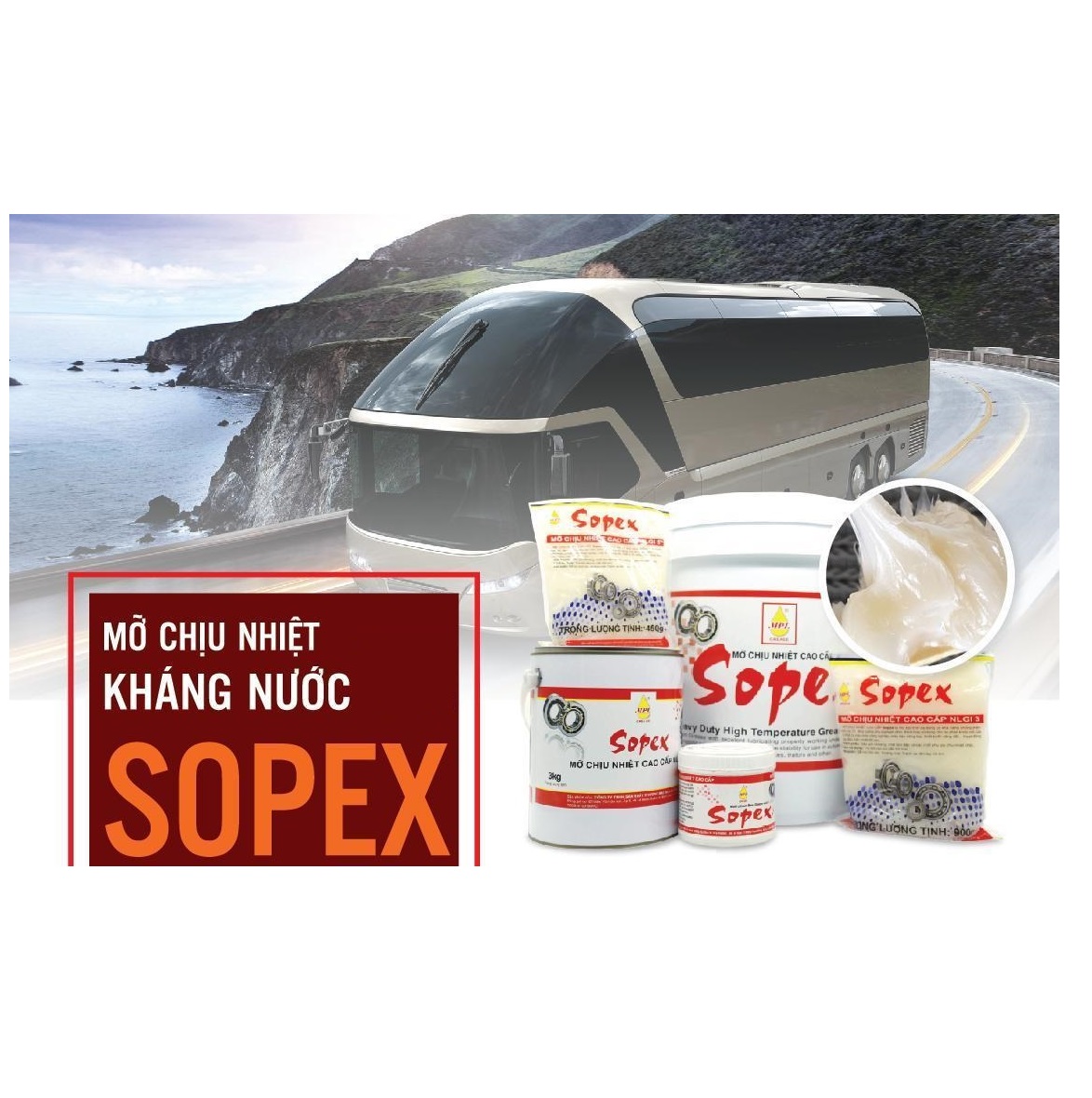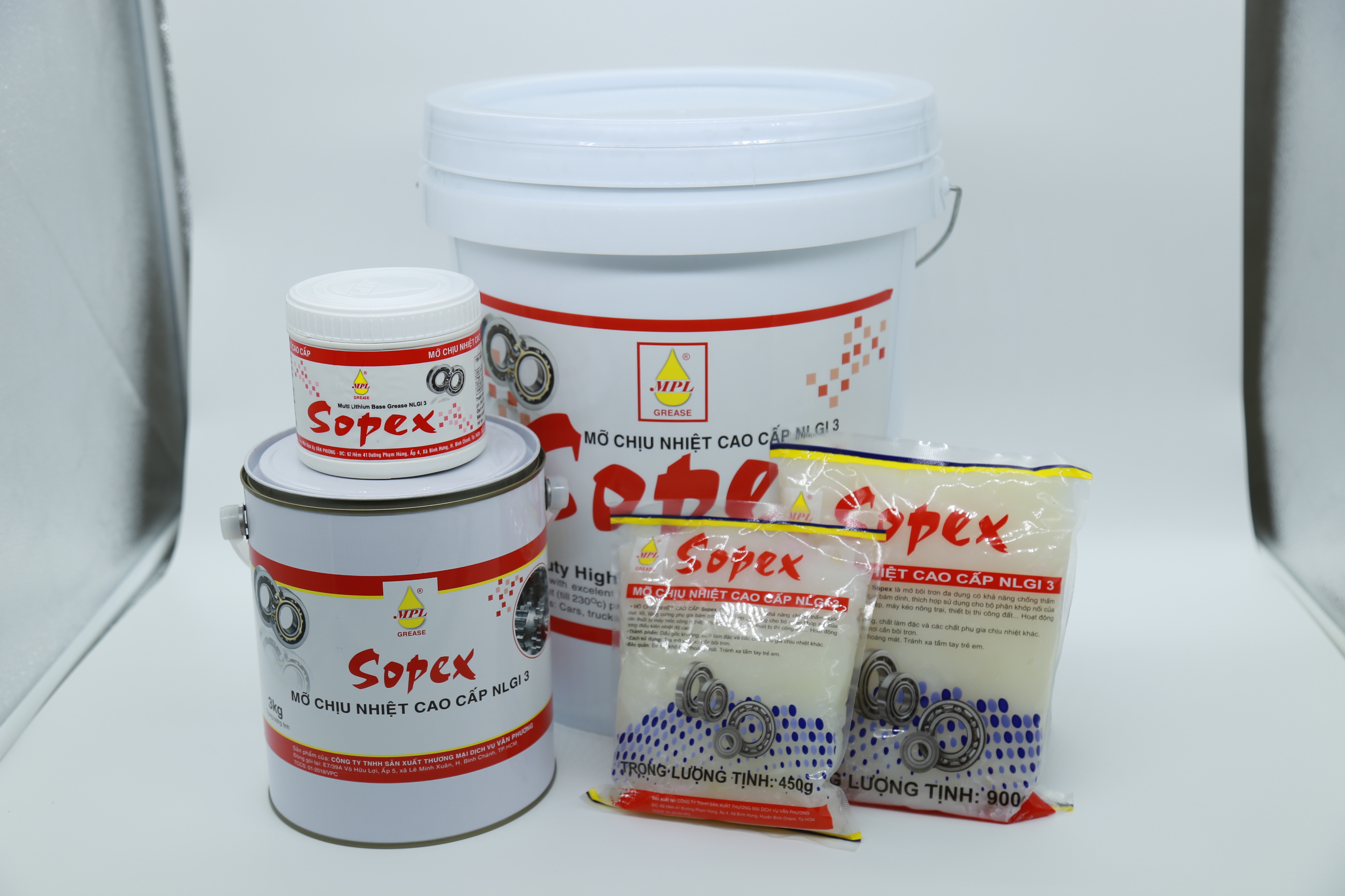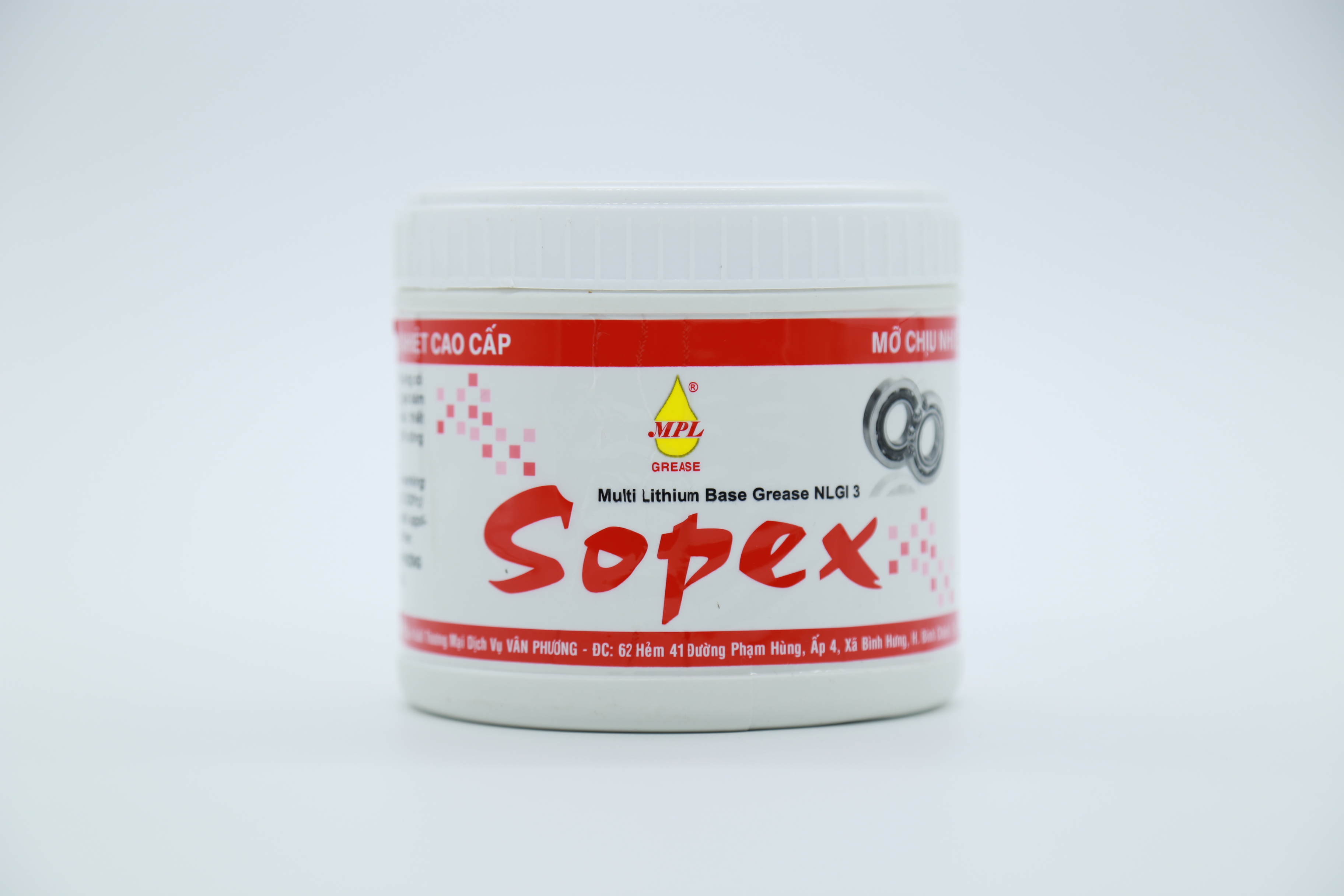 SOPEX là mỡ chịu nhiệt đa năng có khả năng kháng nước và chịu tải tốt được đặc chế từ dầu gốc nhóm II kết hợp với gốc làm đặc Lithium cùng phụ gia chống rỉ, chống oxy hóa
