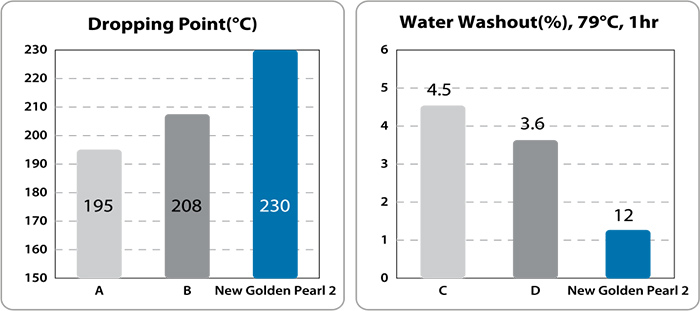 Tính năng chống nước rửa trôi giữ cho mỡ ở nguyên nơi cần bôi trơn trong điều kiện ẩm ướt. Tính ổn định của quá trình ôxy hóa hữu hiệu giúp kéo dài thời gian sử dụng của mỡ.