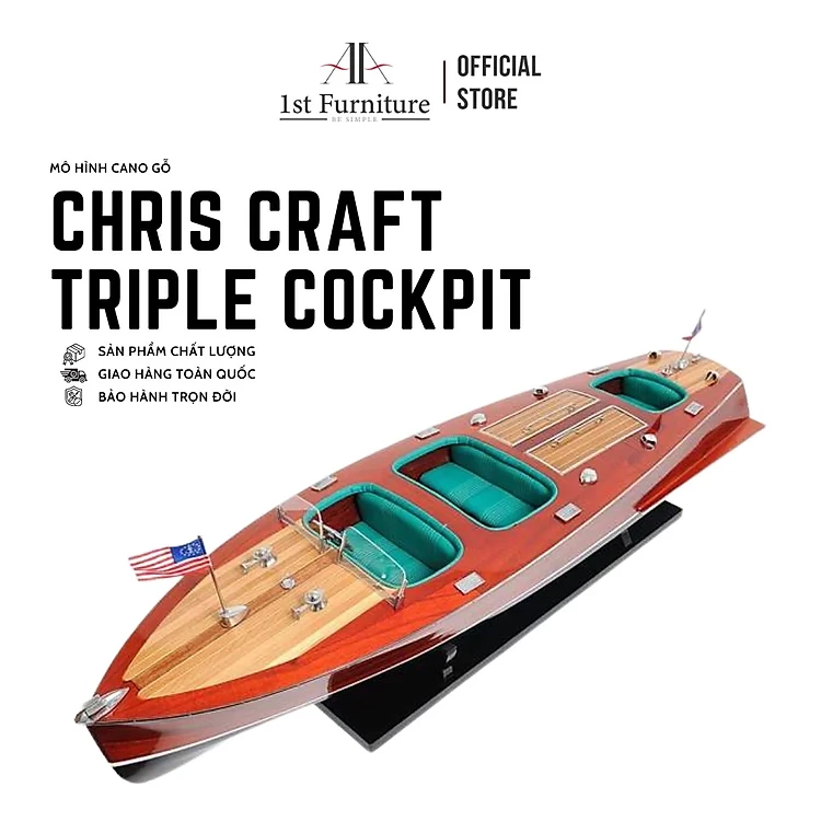 Mô hình cano CHRIS CRAFT TRIPLE COCKPIT cao cấp, mô hình thuyền gỗ tự nhiên sang trọng lắp ráp sẵn 1st FURNITURE