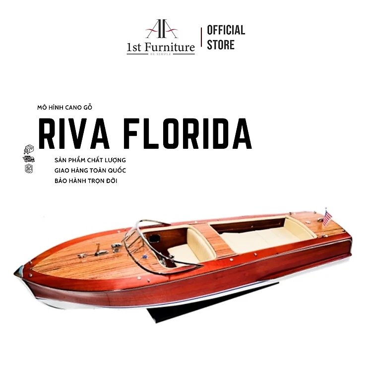 Mô hình cano RIVA FLORIDA cao cấp, mô hình thuyền gỗ tự nhiên sang trọng lắp ráp sẵn 1st FURNITURE