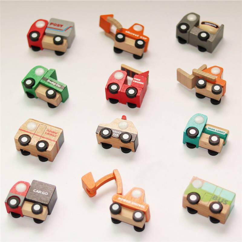 12 xe mô hình gỗ, các con vừa được làm quen, nhận biết đặc điểm các loại phương tiện giao thông, vừa làm đồ chơi mô hình