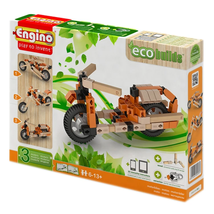 Mô Hình Engino ECO BUILDS - Xe Mô Tô Tàng Hình EB11 (23 x 31 x 5.5cm) là mô hình lắp ráp xe dành cho bé với kiểu dáng độc đáo và hiện đại. Bé chỉ cần lắp ráp các khối gỗ và thanh nhựa để hoàn thành sản phẩm, sau đó dùng lực để đẩy xe chuyển động theo ý muốn. Trò chơi giúp bé rèn luyện kĩ năng sử dụng tay chân và khám phá thế giới xung quanh.