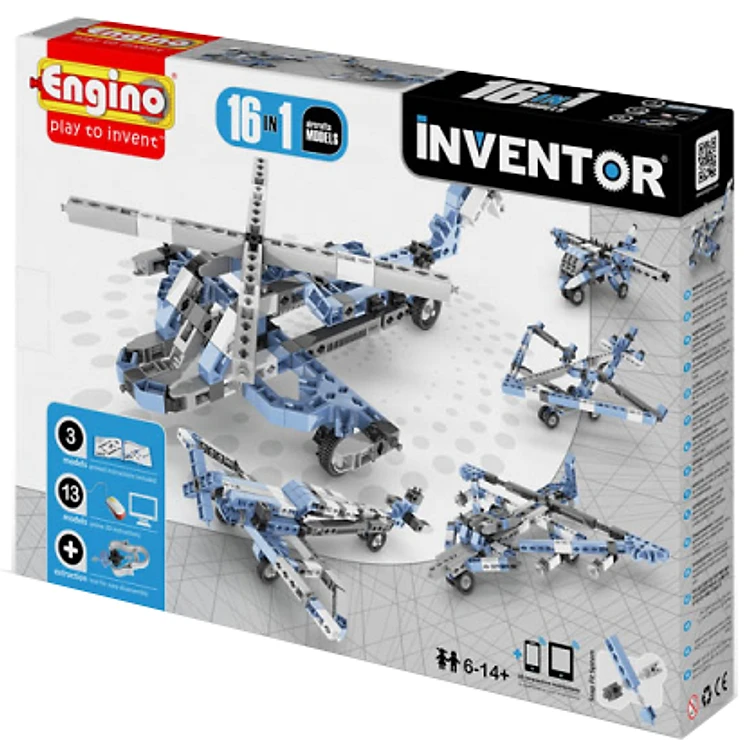 Mô Hình Engino Inventor - Tàu Bay M16 1633 (27 x 37 x 5.5cm) là sản phẩm có thể lắp ghép được thành 16 mẫu tàu bay với các kiểu dáng khác nhau như: tàu trực thăng, tàu cứu hộ, tàu chiến đấu và tàu phản lực…, từ cổ điển đến hiện tại. Bé có thể thỏa sức sáng tạo với “sân khấu trên không” của mình với những trò bay ngã ngữa, lộn nhào hay xoắn ốc điệu nghệ. Hơn nữa, trong suốt quá trình mày mò lắp ghép, bé sẽ luyện được khả năng vận động và tăng khả năng tư duy.