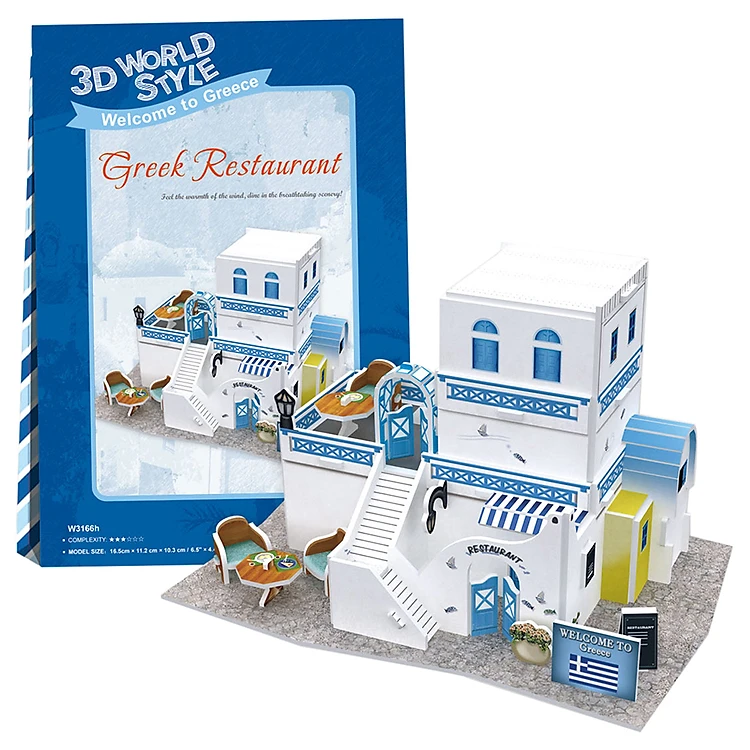 - Mô Hình Giấy 3D CubicFun – Greek Restaurant W3166H (39 Chi Tiết) mang đến cho bé bí quyết xây dựng những không gian kiến trúc giản dị, phóng khoáng của những địa điểm nổi tiếng trên thế giới đến các bé thông qua những miếng ghép hình.