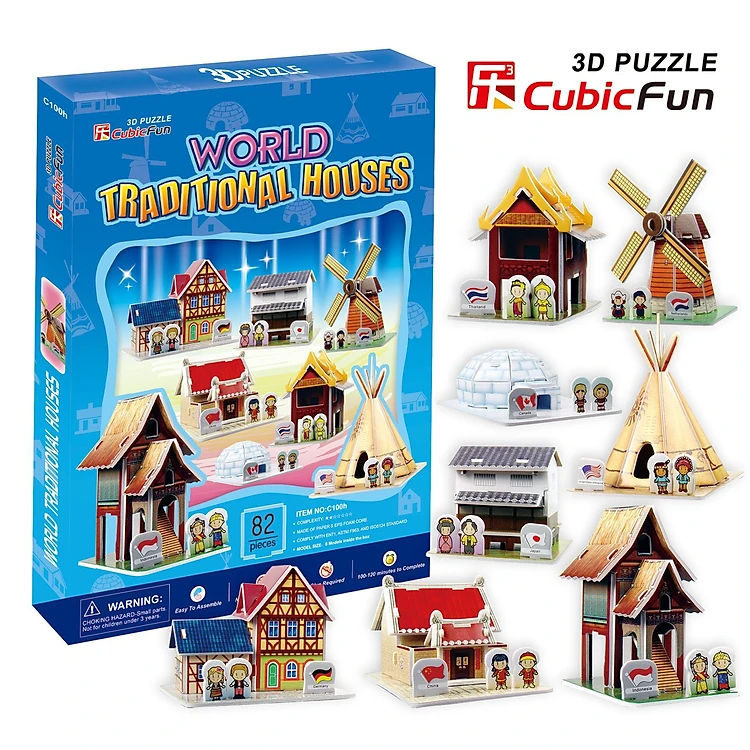 Mô Hình Giấy Cubic Fun: Traditional House là bộ mô hình 3D tuyệt vời với các dạng ngôi nhà truyền thống của các quốc gia trên thế giới. Với 80 miếng ghép, Cubic Fun: Traditional House sẽ cho bạn 8 ngôi nhà truyền thống đặc sắc và vô cùng sinh động của 8 quốc gia Hà Lan, Đức, Nhật bản, Trung Quốc, Người da đỏ, Người Eskimo, Baru, Thái Lan.