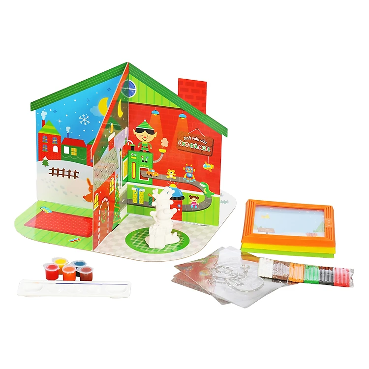 - Bộ sản phẩm bao gồm tranh vẽ cùng sáp màu, đất nặn để tạo lên những bức tranh cùng mô hình dễ thương đáng yêu, ngoài ra bé có thể tô màu cho chú tuần lộc của ông già Noel và tự tay làm tranh đất nặn để trang trí hoặc tặng quà cho ông bà, bố mẹ với những lời chúc yêu thương viết vào tấm thiệp sẵn có.