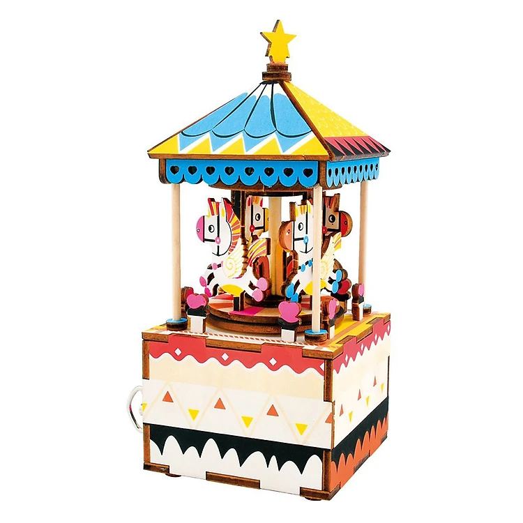 - Mô Hình Gỗ 3D Robotime - Hộp Âm Nhạc Merry-Go-Round là sản phẩm vừa tự tay lắp ráp vừa có thể trang trí và thưởng thức âm nhạc du dương và cũng là món quà tuyệt vời để gửi đến người thân yêu của mình.