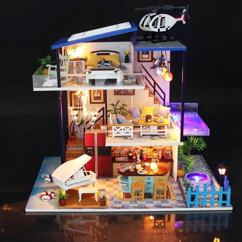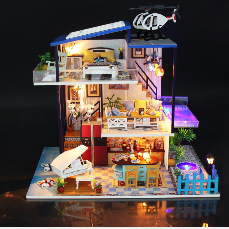 Bộ mô hình lắp ráp nhà này sẽ là nơi gắn kết bạn và người thân của mình tìm đến những phút giây thư giãn, vui nhộn. Hãy cùng người thân, bạn bè của mình bắt tay vào việc tẩn mẩn từng chi tiết trong mô hình, cùng nhau sáng tạo, cùng nhau tìm những vật dụng tí hon để làm hoàn thiện mô hình. Hoàn thiện Mô hình nhà DIY Doll House Biệt thự Blue Romance Kèm Đèn LED và MICA chống bụi cũng là cách bạn làm vun đầy những phút giây vui vẻ mà mọi người được ở bên nhau.