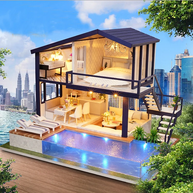 Mô hình nhà DIY Doll House Nhà gỗ Time Apartment Kèm Đèn LED