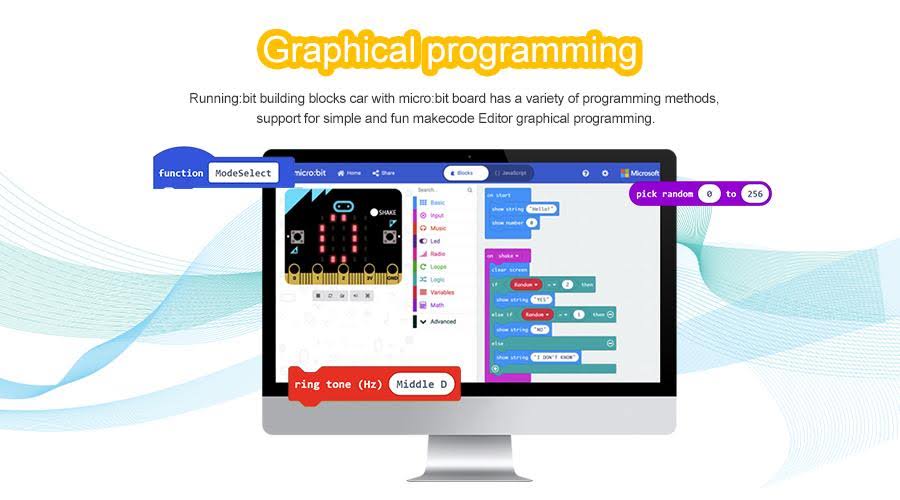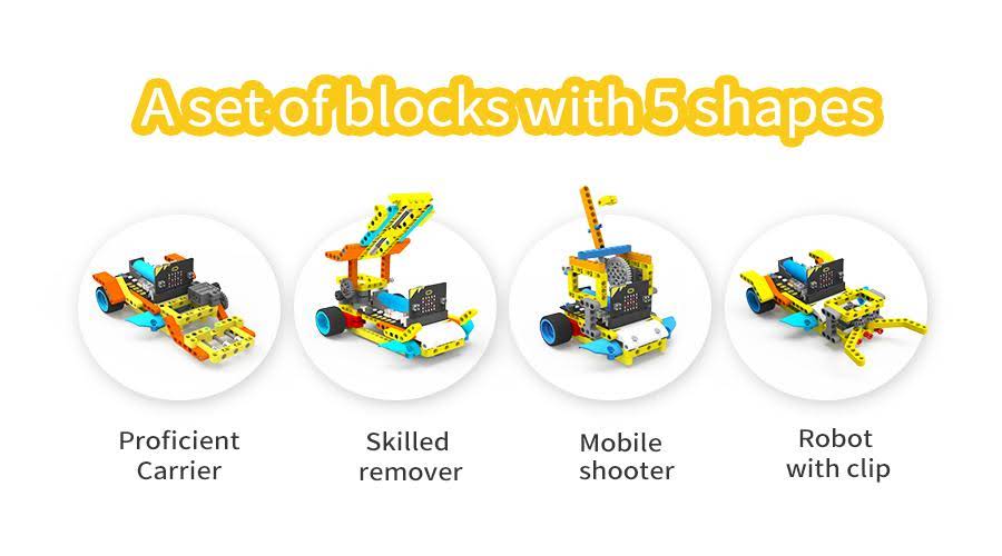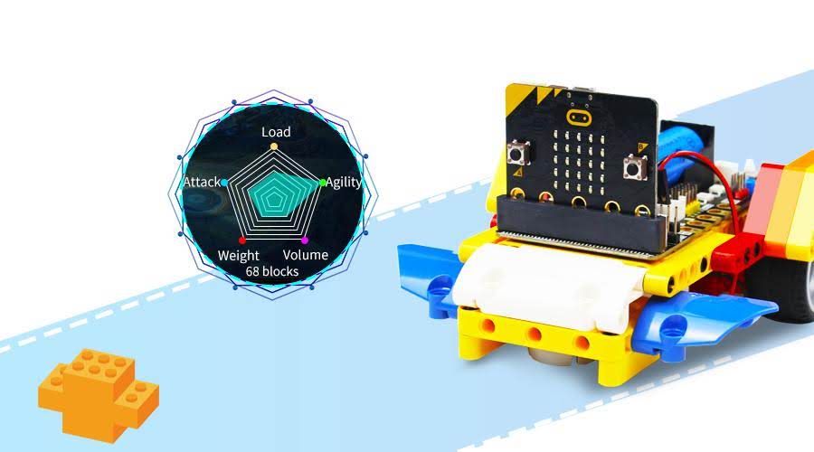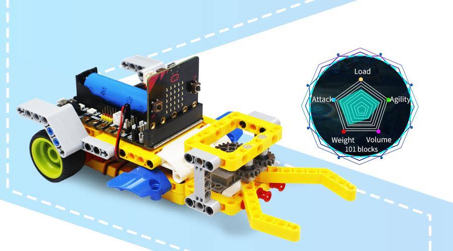 Bộ mô hình robot Running: bit với 173 chi tiết, hai động cơ DC và servo có thể được sử dụng để lắp ghép thành Ô tô, Tàu sân bay, Robot, Bắn súng di động, Được trang bị mạch mở rộng đa chức năng super: bit, mang đến cho các mô hình đầy sức sống và sáng tạo. Chúng tôi có thể đạt được một số chức năng thú vị, chẳng hạn như Trận chiến khiêu vũ, Giao thông vận tải, Ném đạn, Oto điều khiển từ xa, Chúng có thể được điều khiển bởi APP của điện thoại di động Android / iOS của bạn. Các bước lắp ráp chi tiết cùng với hơn 30 khóa học cho phép người dùng trải nghiệm sự thú vị của việc xây dựng các khối trong khi học lập trình.