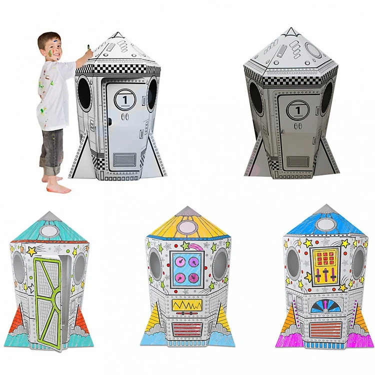Mô hình tàu vũ trụ bằng giấy tô màu cho bé Z003-4 - Họa tiết ngẫu nhiên - Tặng kèm 1 bộ bút lông nhiều màu cho bé