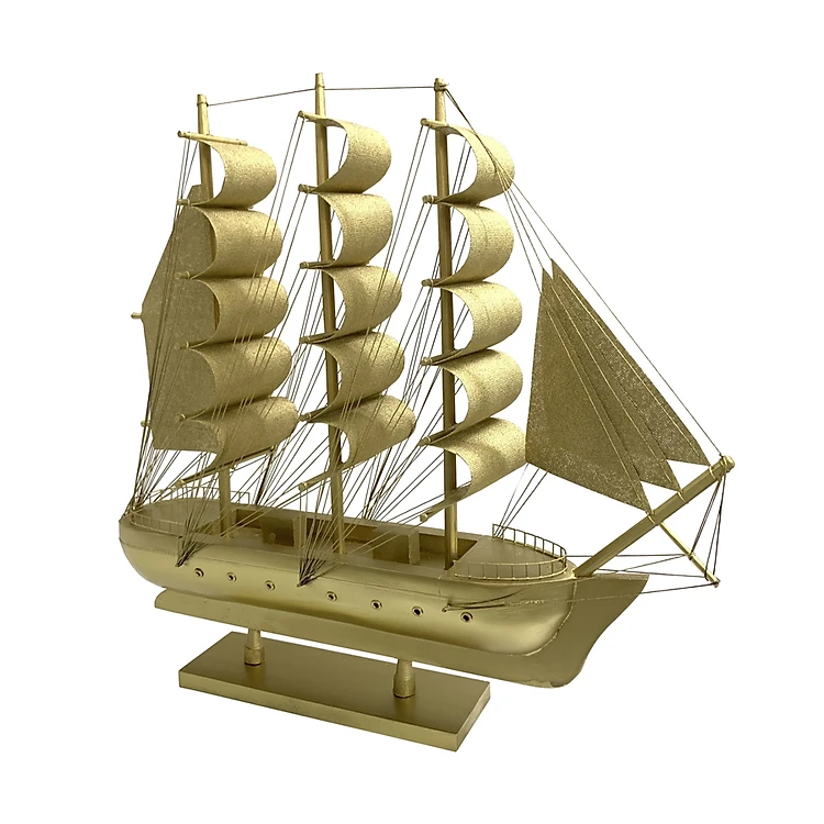 [Dài 32cm - Giao hàng nguyên chiếc] Mô hình tàu thuyền gỗ trang trí nhà cửa - tàu gỗ phong thủy thuận buồm xuôi gió - Vàng Ánh Kim