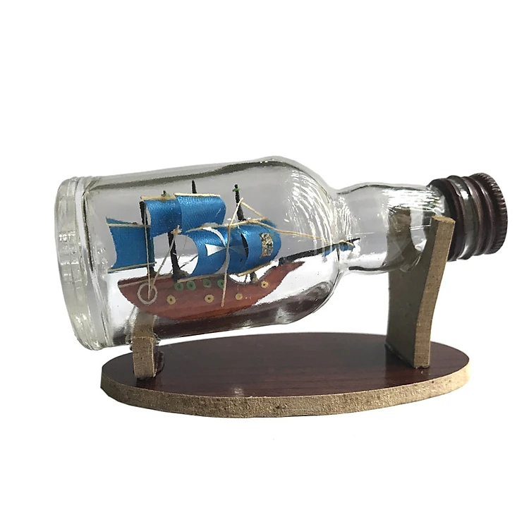 Mô hình thuyền gỗ trong chai thủy tinh nhỏ N4