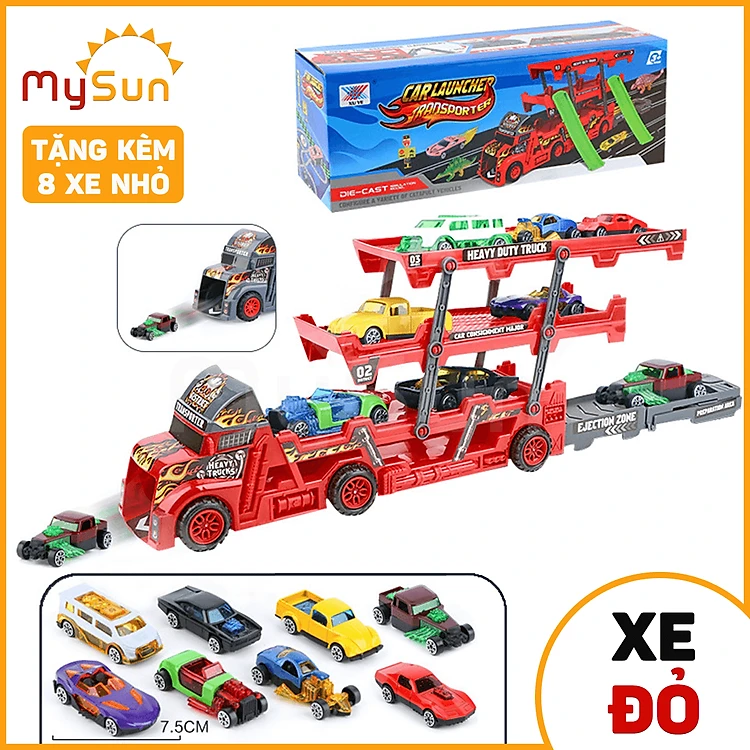 Mô hình xe tải container đầu kéo đồ chơi chở 8 ô tô cho bé MySun